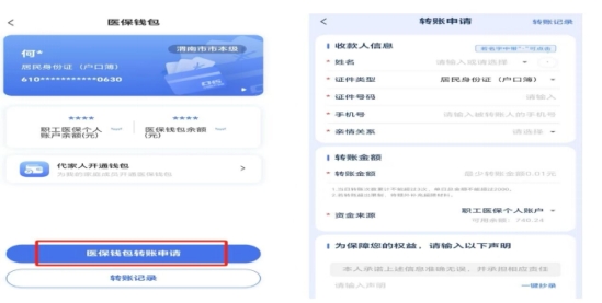 除了向近亲属转账,参保人在已上线医保钱包并且完