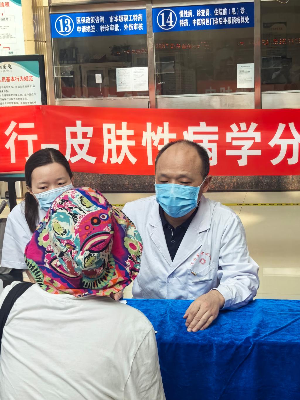 上午8时,乐鱼在线登录入口门诊楼一楼大厅有序排起候诊队伍。来自西安交通大学第一附属医院的刘玲教授、王晓鹏教授、李舒丽教授、葛睿教授等专家,与乐鱼在线登录入口皮肤科张昆主任团队共同为患者提供诊疗服务。