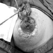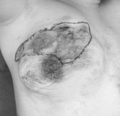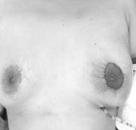 通过对该类疾病的深入研究以及前期乳房整形技术的开展与研究,自2015年3月起,肿瘤外科采用“病灶根治性切除+乳房成型技术”并和中医科联合,应用“阳和汤加减”治疗近10例该类疾病患者,在疾病根除的基础上保证了乳房外形美观。经随访6月至1年均未复发,患者表示非常满意(图3,4)。
