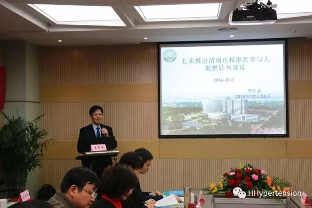 渭南市现代心血管病防治研究中心主任、渭南市心血管首席专家李军农主任发表主题演讲,针对大家最关心的问题做了很好的解读:在过去的一年里,通过渭南市现代心血管病防治研究中心专家们的不懈努力,在“H型高血压比较效果研究”队列的建设上,取得了可喜的成果:截止2016年12月,实现H型高血压队列管理患者17116人,14个县级以上医院都参与到了控制H型高血压防治脑卒中项目当中。在今后的工作中,还需要在患者宣传教育、慢病防治大数据队列的建设上下功夫,加强以县级医院为主导,并联合疾控中心的项目联合体建设,借助于医疗下乡与分级诊疗的政策,将慢病防控做到乡镇卫生院、村卫生室等医疗最基层。争取在2017年实现H型高血压管理队列突破3万例;在渭南市慢病防控体系的建设上更进一步,为打造健康渭南,实现中国梦而努力!