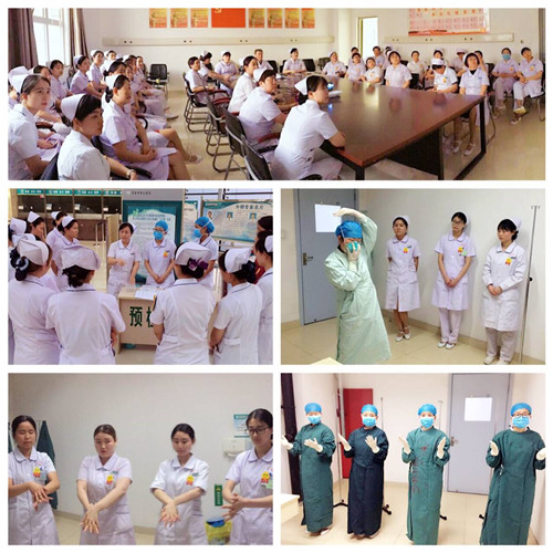 从5月7日开始,门诊部利用每日下班时间采用集中、重点岗位强化培训的方式,分别组织人员学习了H7N9禽流感的临床表现、分诊要点、就诊流程、消毒隔离及个人防护等知识培训。为了能够使大家在疫情来临时保持从容与稳定,门诊部组织进行了模拟高度疑似H7N9患者的预检、转移、隔离防护等环节的实战演练,使工作人员时刻将流程熟记于心,最大限度减少交叉感染的可能性。分诊过程中重点加强对不明原因发热、肺炎病例监测,并询问其职业,发病前是否接触过病禽、死禽或到过活禽市场,一旦发现符合以上特征的患者,切实做好消毒、隔离治疗、陪护与医务人员防护等各项措施,消除医院感染隐患。
