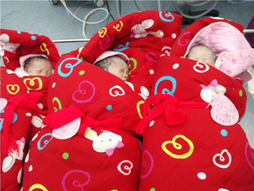 三胞胎妊娠自然发生率为7万分之一,易出现早产及孕期并发症,属高危妊娠。该孕妇在早孕时B超发现是三胞胎时,家人就一直紧张和担心。孕早期妊娠剧吐给予打针输液,孕中期又有出血等先兆流产征兆住院保胎。孕期以来,孕妇小心翼翼,好不容易熬到八个多月了,由县医院转诊而来。从三胞胎孕妇入院那天开始,就成为产科的重点保护对象。三级主管医生倍加重视,护士个个操心,准点定时监护母婴状况,不得有丝毫疏忽,决定择期手术,做好各项紧急预案并上报医院。