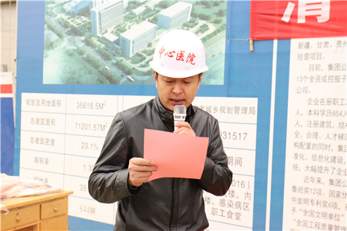 封顶仪式由医院基建办科长巩文明主持,院长张进社做了热情洋溢的致辞,对长期以来关心、重视、支持我院工程建设的相关部门、施工企业、监理公司,尤其是日夜奋战在工地上的建设者们表示了衷心的感谢,并指出感染病区综合楼的顺利封顶标志着项目取得阶段性胜利,希望全体单位进一步严把质量关,加强安全管理,确保这个重大项目、民生工程如期竣工,再创医院新辉煌。仪式最后,由院党委书记鲁海燕宣布了我院感染病区综合楼封顶开始。