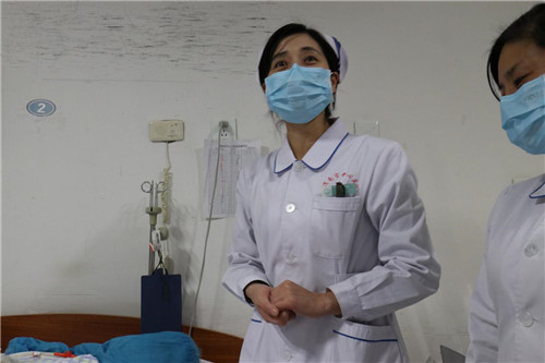 本次查房围绕一例高龄危重患者大面积脑梗死并梗死后出血的护理展开,在听取责任护士杨帆的病情汇报及到病房现场查看患者后,神经内科南江波副主任护师对该患者的肌力评定、深静脉血栓的预防、语言及吞咽的康复护理、良肢位的摆放等进行讲解和指导;神经内科康复护士张丽娟现场演示为患者进行被动康复锻炼的手法、姿势等动作要领;呼吸内科孙洁玉副主任护师分析了患者痰液不易吸出的原因,并指导护士放置口咽管后可有效吸痰,同时也提出给患者适度雾化、加强口腔护理、抬高床头等护理措施;皮肤管理小组伤口造口师张少青副主任护师对目前该患者由于带状疱疹造成的多处大面积皮肤破溃的换药、护理做了详细的指导和安排,并提出患者是压疮的高危人群,要积极采取防范措施,还提醒护士注意胃管、尿管、吸氧管、电极片等器械性皮肤损伤的检查和预防;营养师权亚玲了解到患者目前鼻饲饮食为自制匀浆膳后,讲解了鼻胃管与鼻肠管的应用及给食方法,指导护士如何观察和预防鼻饲并发症,进一步询问了患者的身高、体重,计算出患者所需热量和营养,为患者“量身”制定了食谱;高亚梅副主任检查了护士心电监测仪的使用、口服药护理、鼻饲及各种风险防范健康教育情况,对危重患者的管理及多种并发症的预防、优质护理方面提出指导性意见。