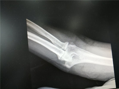 半年前,患者摔伤后在外院就诊,肘关节处外用膏药治疗效果不佳。一周前前来我院行X线检查提示:右肘关节骨性关节炎,门诊检查后以"右肘关节骨关节炎"诊断收住骨三科。