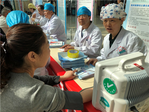 3月22日至29日,是第三个中国麻醉周,今年的活动主题为“敬畏生命 关注麻醉”-----安全舒适保健康,麻醉医生在身旁”。此次麻醉周也对分娩镇痛、无痛胃肠镜、无痛支气管镜、无痛人流、无痛宫腔镜等舒适化诊疗进行了宣传。同时为广大前来的患者进行了血压、血氧、血糖等监测,回答了他们提出的各种有关麻醉问题。