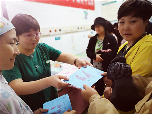 此次活动由新生儿科护士长季蓓主持,科室护理人员准备了精彩的日常护理小讲堂,细致演示了新生儿脐部消毒、呛奶急救、拍嗝、七步洗手法等日常护理。刘静主任把精心准备的六一儿童节礼物——“小脚丫”祝福卡送到每一个宝爸宝妈手中。一双双小脚丫,是无比珍贵的回忆,也是父母的希望与寄托。