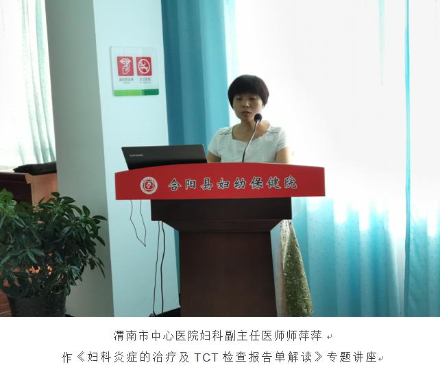 会中,妇科副主任医师李丽丽作了《不孕症的诊疗策略》专题讲座;妇科副主任医师师萍萍作了《妇科炎症的治疗及TCT检查报告单解读》专题讲座;合阳县妇幼保健院孕产保健部部长、妇产科主任贺玉芳作了《不孕不育的早期预防及治疗》专题讲座。