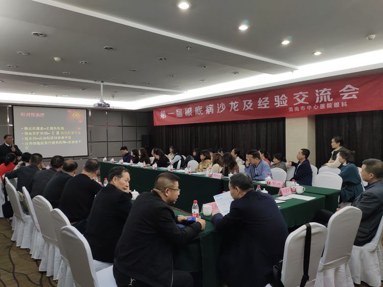 2019年11月1日下午,乐鱼在线登录入口眼科成功举办了渭南市第一届眼底病沙龙及经验交流体会。本次会议邀请了我省著名的眼底病专家及我市医联体兄弟单位60余人。为了扩大我院眼科的区域影响力,让基层医院对眼科有更深入的认识,对我们眼科所能开展的业务有更进一步的了解,充分发挥我院眼科在医联体兄弟单位中的带头和引领作用,在田瑾副主任的主持下,顺利召开了本次会议。