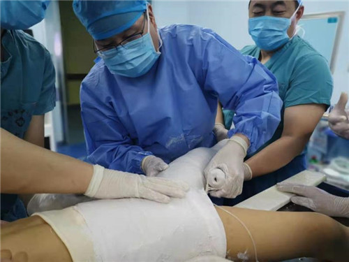 骨二科团队综合考虑患儿年龄、骨折部位、骨折类型、家庭环境及经济条件等因素,本着让患儿更快地康复和早期恢复正常生活的理念,决定急诊行闭合复位微创弹性髓内钉内固定术,术中仅在股骨远端做一个2cm的切口,先用手法复位,再进行弹性髓内钉固定,术中患儿仅出血10毫升,现患儿恢复良好。