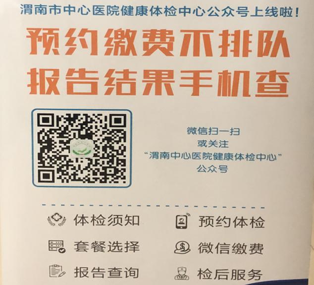 首先微信扫一扫或关注“渭南中心医院健康体检中心”公众号并注册;