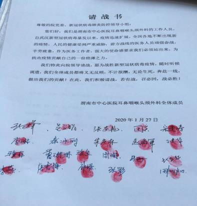 疫情初起,全科同志纷纷递交请战书,党员干部更是一马当先,誓言坚守一线,不胜不退。