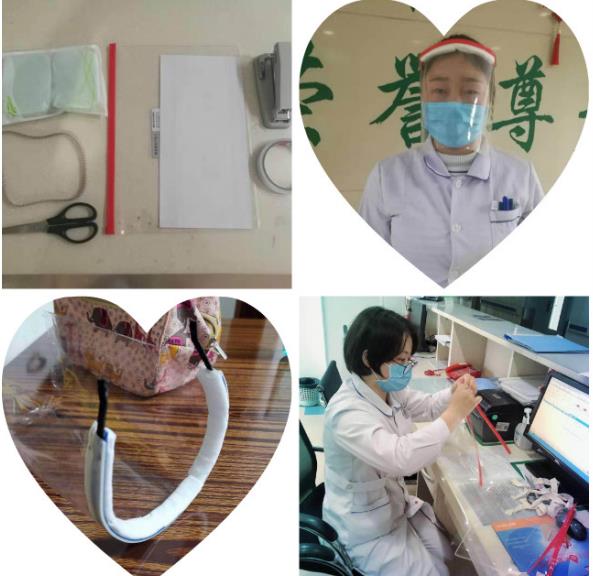 面对当下医疗物资紧缺的情况,为把更多的医疗资源留给一线使用,科室成员发动头脑风暴,自制防护面屏。