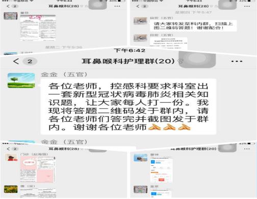 与感染科、呼吸科及发热门诊等高危科室相似,耳鼻咽喉头颈外科门诊同样有较高的接触暴露及交叉感染危险。全科人员积极学习新冠肺炎防控的相关知识,严格把关,保证患者安全,同时也保障自身不受感染。