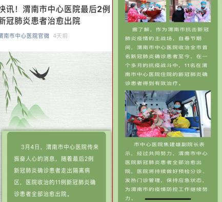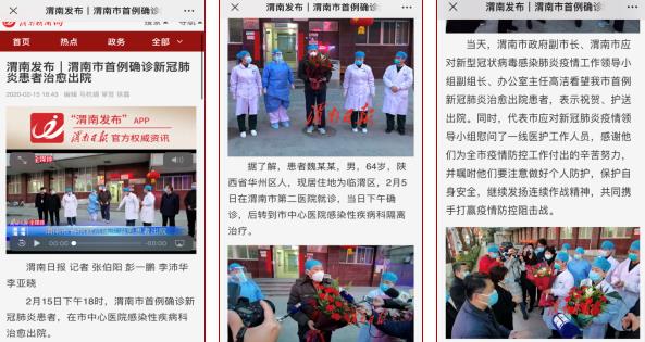 2月19日,渭南市首例重症新冠肺炎患者在西安市唐都医院治愈出院。