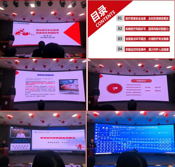 1月22日上午10:30分,医院召开院周会,医务科对各项医疗工作进行全面安排和周密部署。第一次对新型冠状病毒疫情防控进行重点强调,感染性疾病科李红兵主任就《新冠肺炎诊疗方案》录制视频课件,对全院医务人员进行线上培训。