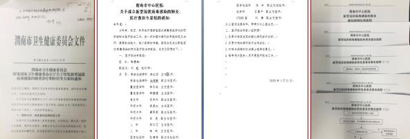 1月21日上午,医务科接到有关“新冠肺炎”第一份文件,按照要求立即起草医院文件,成立了乐鱼在线登录入口新型冠状病毒感染的肺炎医疗救治专家组,制定了《乐鱼在线登录入口新型冠状病毒感染的肺炎疑似病例处理流程》《新型冠状病毒感染防控患者就诊流程》和《新型冠状病毒感染防控危重症患者救治流程》。
