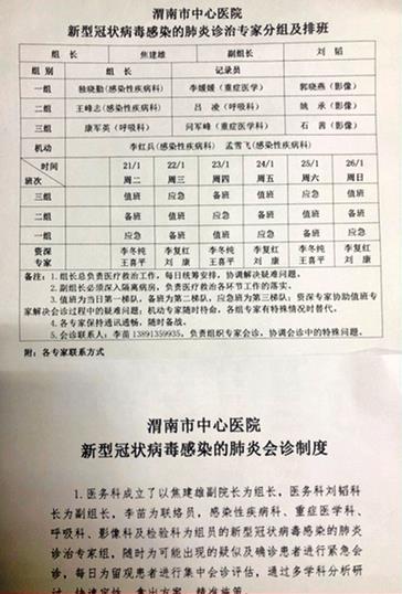 1月27日14:00,焦建雄副院长带领医务科及资深专家组成员,到渭南市第一医院为我市第一例确诊患者会诊,并将该患者转入我院隔离病房进行救治。