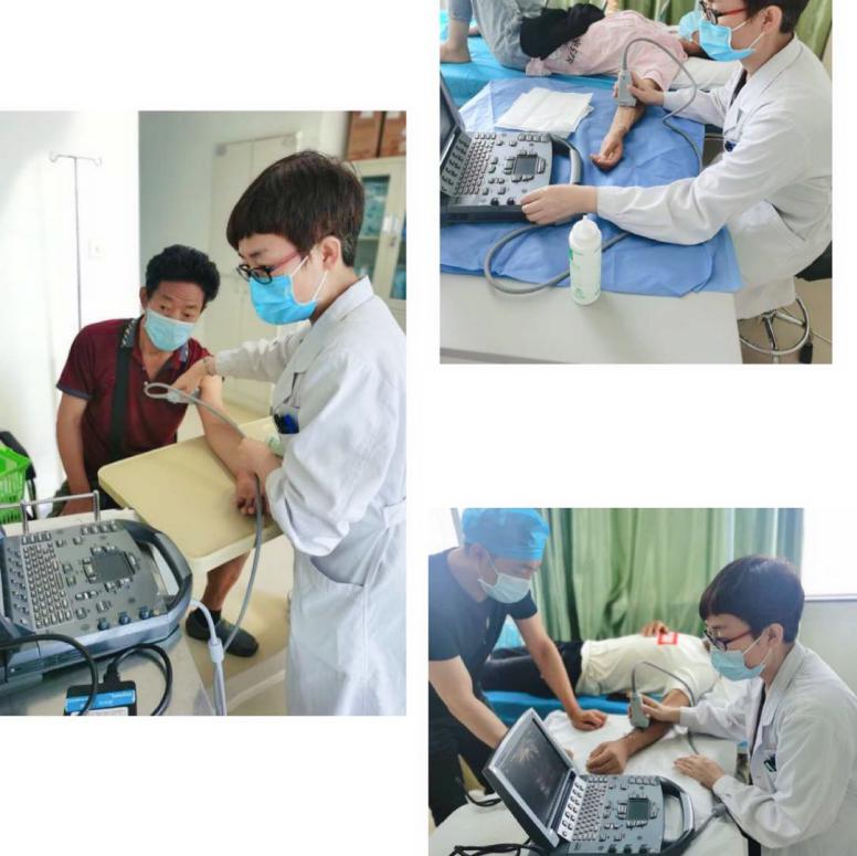 首先,薛主任与韩城市医院医生为患者进行内瘘普查,普查过程中发现几例血管条件差、内瘘狭窄、内瘘血流量过高等疑难问题的患者,薛主任重点评估这类患者的血管,解决患者当前的疑难问题。