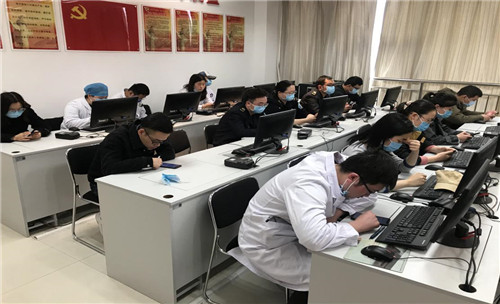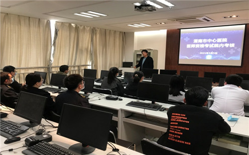 3月5日下午,市中心医院组织医师资格考试第一次院内考核(理论知识)。本次考核采用全新线上答题模式,考核内容主要为国家医师资格考试模拟试题,医务科组织人员进行监考及技术指导。