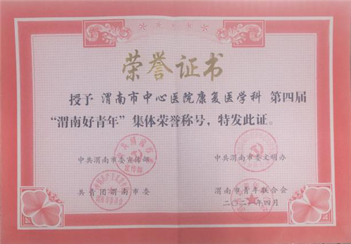 4月28日,在五四青年节来临之际,第四届“渭南好青年”表彰大会举行。乐鱼在线登录入口康复医学科喜获第四届“渭南好青年集体”,受到市委宣传部、文明办、共青团渭南市委、市青年联合会表彰。