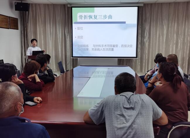 4月27日,科室举办了“功能锻炼,让患者来说话”主题活动。轻症住院患者、重症患者家属及部分出院患者参加。宋茹、李维两位护士分别讲解《腰椎间盘突出症围手术期患者护理》《骨折恢复三部曲、功能锻炼的步骤、作用、要求、方法》相关知识。她们采用现身说教方式,对动作进行分解和演示,并动员患者及家属现场练习。护士长阴倩对大家在功能锻炼遇到的问题,进行逐个讲解,活动在良好的互动氛围中圆满结束。