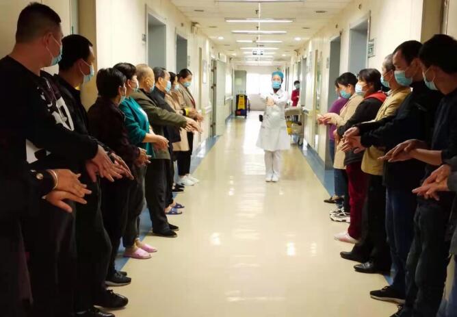 在病区走廊,护士们用通俗语言向病陪人讲解保持清洁的手在预防医院感染中的作用,教会大家如何将手洗得彻底、洗得干净,从而保护自己保护病人。