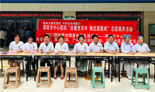 活动现场,内分泌科副主任医师丁小炼、刘莲叶、胡田颖、护士长白杨及护理团队,耳鼻喉科副主任宋建涛、主治医师赵海丽,产科主治医师王琰,药剂科党支部,肾病中医血液党支部医护人员为群众义诊,进行甲状腺防治知识科普宣传,希望大家重视健康体检,提高甲状腺疾病防治意识,谨防恶变。