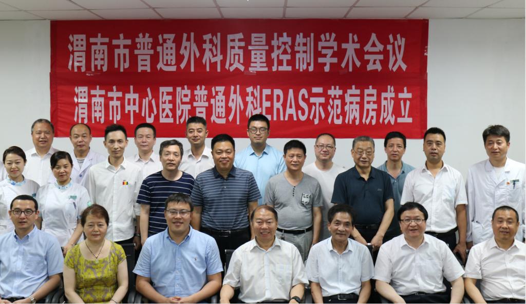 近日,渭南市普通外科质量控制暨市中心医院普通外科加速康复外科(ERAS)示范病房挂牌学术会议召开。西安交通大学附属第一医院马清涌教授、王铮教授、杨雪教授、许克东教授及渭南市各医疗单位参加会议。市中心医院普通外科董山潮、史和平主任主持会议。