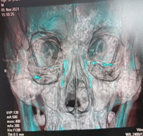 为确保手术顺利进行,更准确了解患者泪道、泪囊及鼻腔空间结构,在眼科主治医师黄国华的协助下,CT&影像科刘康主任团队实施我院首例CT泪道泪囊造影。随后在手术麻醉科的配合下,眼科团队与耳鼻喉科主任郑建军共同努力,完成了我市首例CT泪道、泪囊造影检查及经鼻内镜泪囊鼻腔吻合术。术中、术后冲洗泪道通畅,达到预期效果,改善了患者生活质量,患者十分满意。