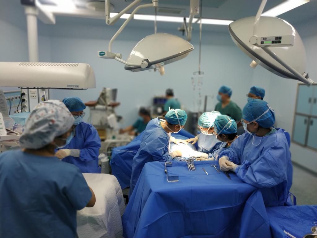 经充分术前准备后,患者于1月14日上午进入手术室,在救治小组专家的严密监测下,麻醉手术科副主任李万鹏和副主任医师雷育华给予行颈内静脉置管建立通路、左侧桡动脉行有创血压监测。麻醉成功后,产科主任魏满莉现场指导、副主任医师王丽菊及助手以严谨精湛的手术操作迅速娩出胎儿。胎儿娩出后,产妇的危险才真正开始。专家们高度警惕,严密观察患者各项生命体征,监护仪每一个微小波动牵动着手术间所有医护的心。