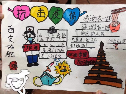 我们负责小区核酸检测工作,第一天检测完成后,一位小朋友送来了他自己画的手抄报,那不太娴熟的画法和颜色的搭配却是小朋友对于我们的信任和工作鼓励最好的印证。他用最简单的语言表达了对我们一线抗疫人员的喜欢和支持,让我们对接下来的工作更有动力和信心。晚上结束一天的工作后,收到我自己孩子的画,看到那些文字,潸然泪下,温暖我的内心。隔着屏幕,我对孩子说:“相信妈妈,相信国家,等抗疫胜利结束,妈妈很快就会回来!”