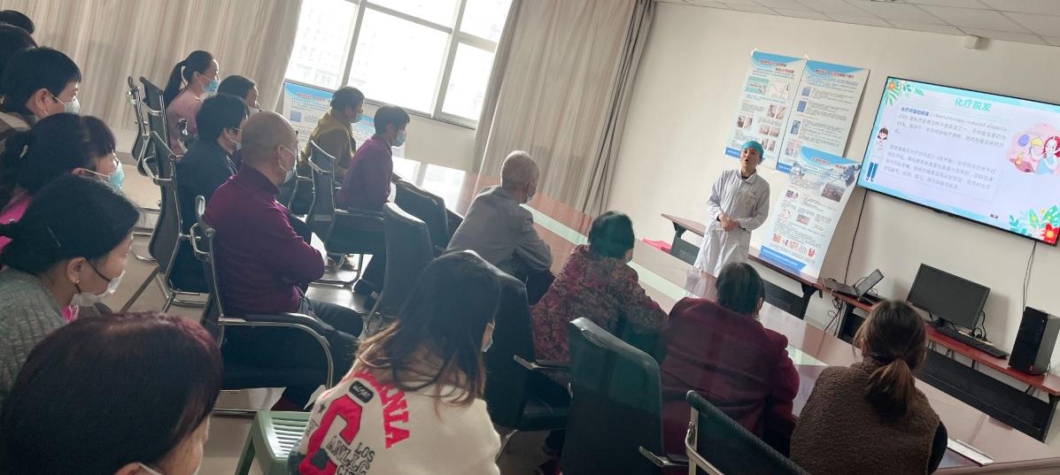 主管护师王甜甜以《化疗脱发之头发护理》为主题,从带冰帽、膳食调理及穴位按摩等方面讲解如何应对化疗脱发,使患者充分认识到脱发不可怕,且化疗导致的脱发是暂时的、可逆性的,让脱发不再让人恐惧。