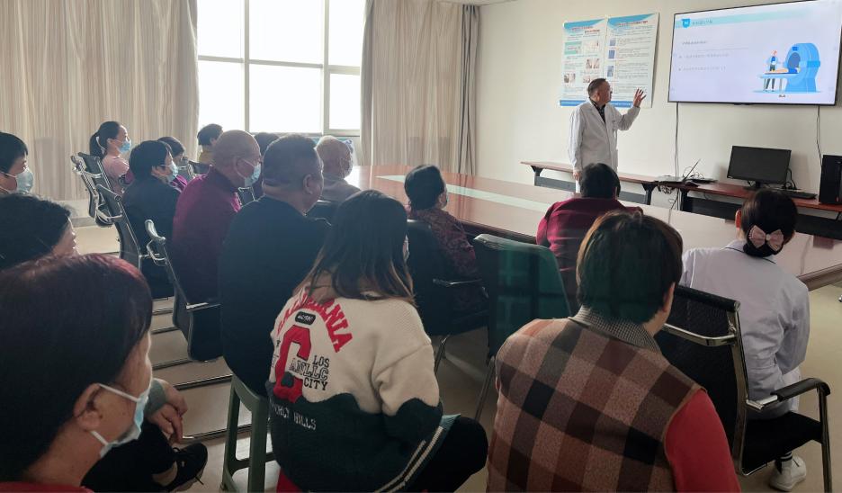 会上,李新选主任以《肺癌早期预防》为主题,从肺癌的危害,早期症状及如何进行早期筛查等方面进行科普宣传,帮助患者提高癌症防治意识和能力,进行科学就医、接受规范诊疗,遏制癌症危害,提升健康水平。