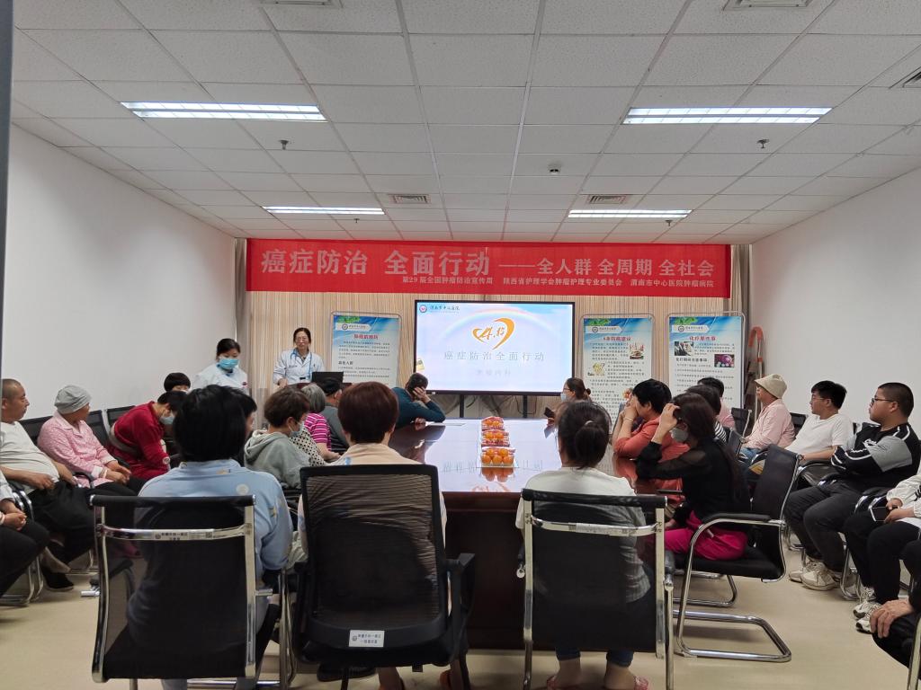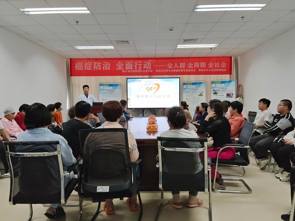 4月18日下午,在第29届全国肿瘤防治宣传周期间,市中心医院在住院一部十楼示教室举办防癌抗癌患者健康宣教会,对肿瘤内科、肿瘤外科一病区、肿瘤外科二病区在院患者及家属和部分已康复出院病友进行座谈宣教,旨在让患者更好地了解肿瘤早诊早治,提高肿瘤治愈率。