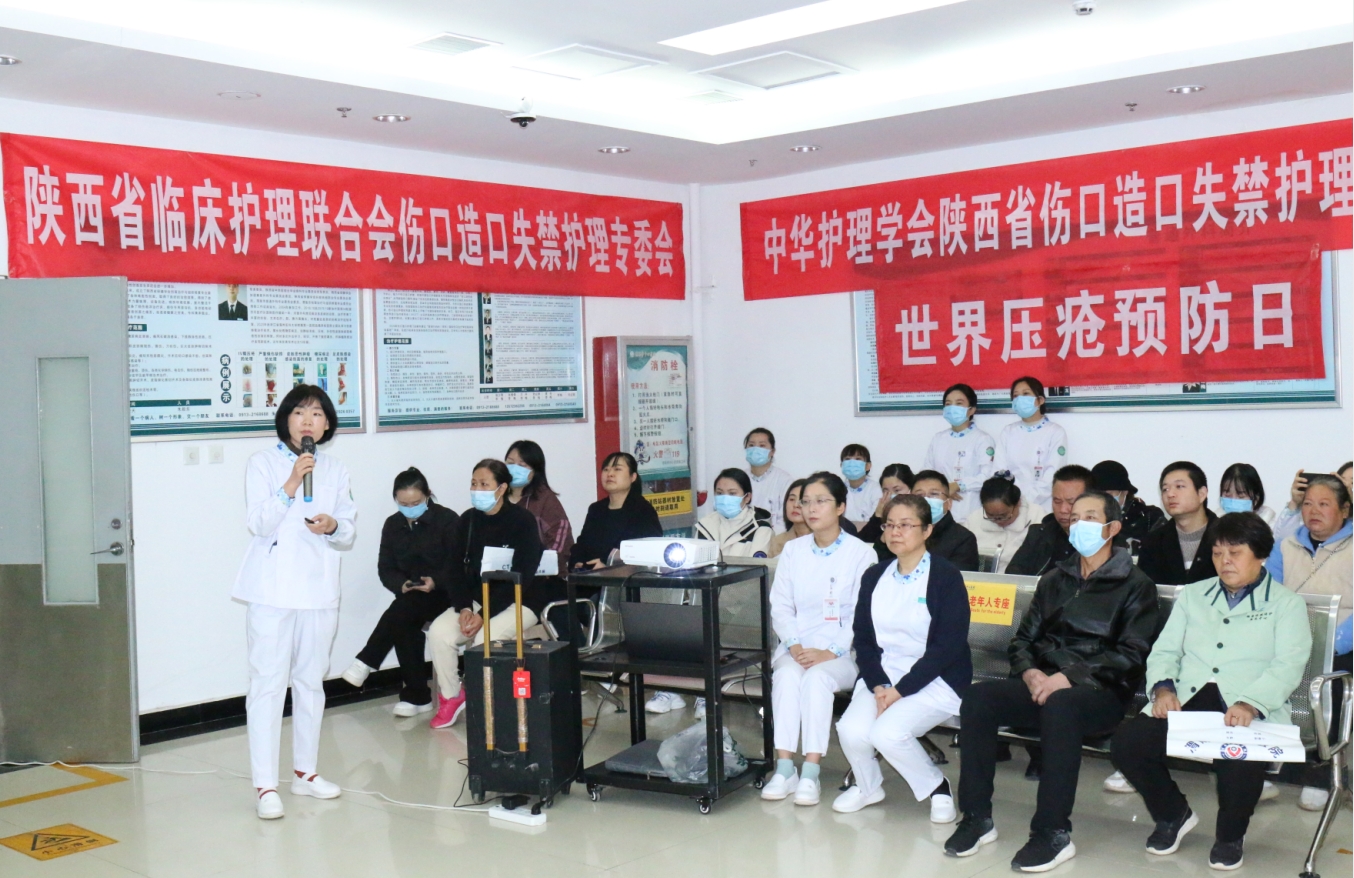 为普及压力性损伤的预防和基本护理方法,使更多的人了解和关注压力性损伤,有效预防压力性损伤发生,11月16日,世界压疮预防日来临之际,市中心医院伤口造口护理团队在普通外科门诊举办以“皮肤安康、即刻守护”为主题的科普宣传活动。各科室皮肤联络员和压疮患者四十余人参加。活动由普通外科张少青护士长主持。