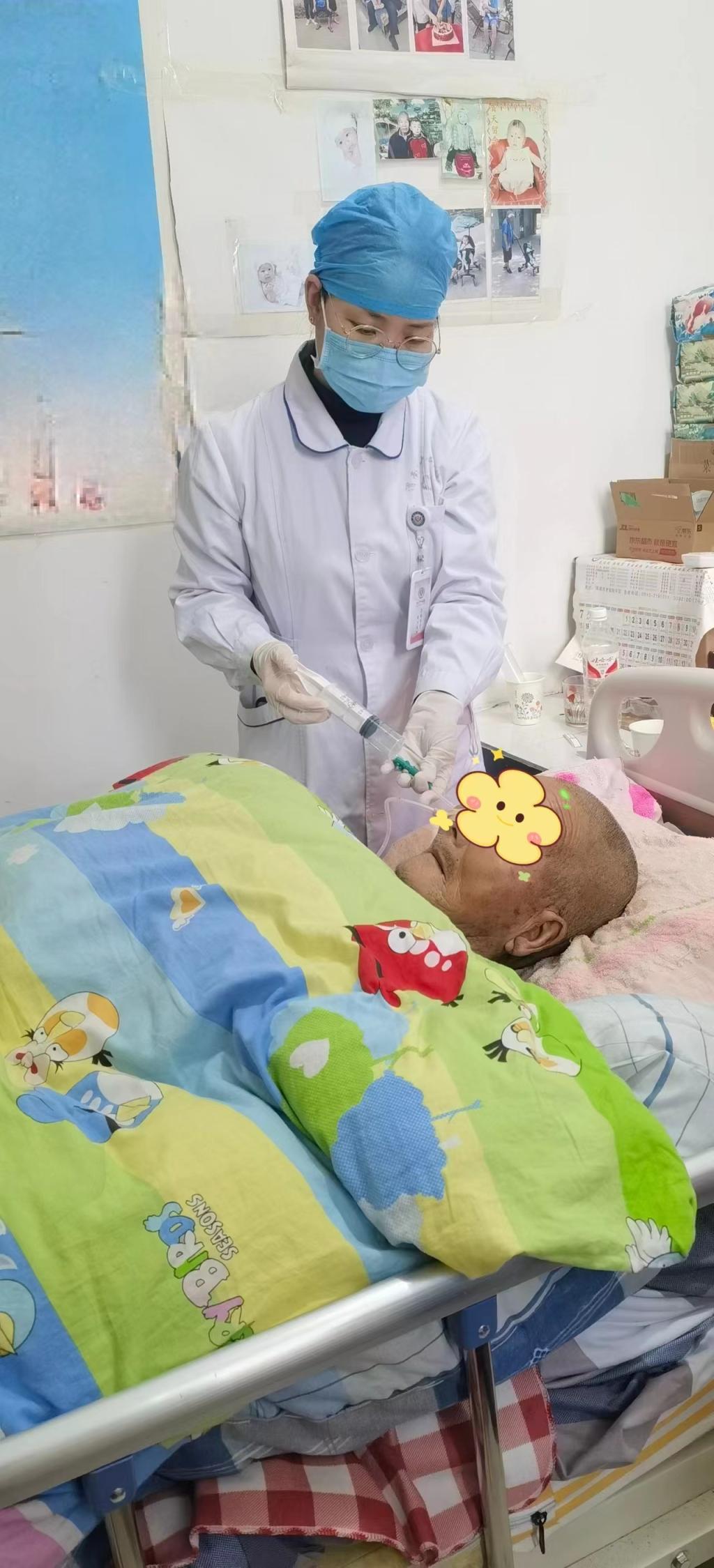 “叮咚…叮咚…”平台接到订单,护理人员仔细询问了解病人情况后,神经内科护士长杨霏第一时间安排杜京、张晓婷两名护士冒雪上门前去更换胃管。路上寒风凛冽,加之大雪过后道路结冰严重,行走极为不易,但护理人员还是克服种种困难以最快速度到达患者家中。