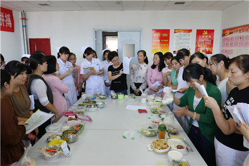 众所周知,糖尿病的发病率逐年增加,糖尿病住院患者遍布全院各个科室,饮食治疗是糖尿病治疗的主要方法之一,所以饮食教育就尤为重要。为了提高大家的对糖尿病饮食更深入的理解,指导宣教更具有实效性、专业性,院级糖尿病护理小组头脑风暴、集思广益、积极探索,创新培训模式,使传统的、单纯的授课培训模式,变化为本次培训——“手动饮食”的模式,即在理论培训的基础上,让小组成员根据自己的标准体重、体型、活动量等身体状态,计算出本人全天的饮食需要量,为自己量身定做一份热量符合要求、营养搭配合理的丰盛午餐。
