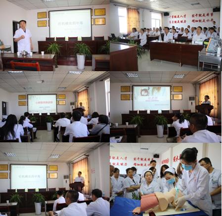 操作环节,现场的医护人员均非常珍惜亲自操作的机会,依次上台进行心肺复苏及气道哽阻急救操作,下邽中心医院副院长闫渭平也亲自进行了心肺复苏操作,为下邽中心医院医务人员工作培训起了很好的带头作用。