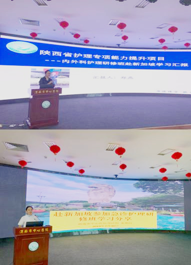 学习汇报环节,心血管内科郑燕护士长、急诊科张娟红护士长向大家汇报了赴新加坡研修学习情况,主要从精细化管理、人性化服务等方面向大家进行了分享。同时结合学习情况在科内进行了相关工作的改善,以促进科室及医院护理工作不断发展。