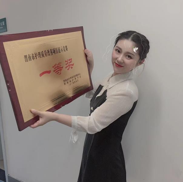 手捧奖牌,心情万分激动,是医院为我们搭建了一个很好的展示团队实力和实现个人价值的平台,是科室给予我这次宝贵的机会。在护士长的坚定鼓励和精心指导下,在姐妹们的无私帮助下,才使我在短时间内得到快速提高,突破自我,最终走出科室,登上医院、全市的讲台。我也深知,科室还有非常有潜力的姐妹们,她们只是缺少了这样的机会。所有的优秀,皆从平凡而来,所有的幸运,离不开努力和坚持。