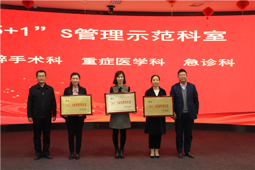 颁奖环节,院领导为评选出的12个“5+1”S管理示范科室颁发了奖牌。