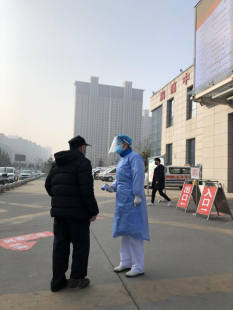 春寒料峭,在岗的预检分诊的医务人员没有一丝懈怠,不断改进工作流程,方便来访者及医务人员更好地开展工作。工作人员准备好红外线测温仪、体温计、一次性口罩、快速手消毒剂、发热登记本,严格按照岗位职责和工作流程,为每一位进入医院的人员测量体温,做好登记、并严格按照院感要求进行消毒等工作。