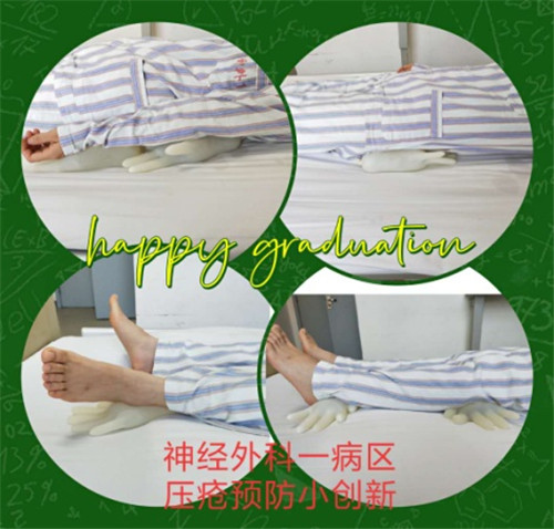 由于病情等原因,患者烦躁不安,极易发生坠床等意外。为确保患者安全,大家集思广益,制作符合神经外科患者使用的约束带,与传统的约束带相比,这种约束方法更加安全稳定舒适,避免了病人自残、自伤,防止了意外的发生,使各项治疗护理能够顺利进行。