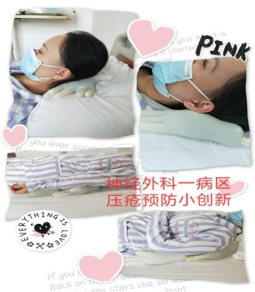 神经外科患者大多病情危重,生活不能自理,加之长期卧床,容易导致压疮的发生。护理人员对如何预防皮肤受压进行精心指导,不断示范,利用医用橡胶手套自制水囊袋,根据患者的卧位放置于身体易受压部位,有效缓解了患者的压疮之苦。