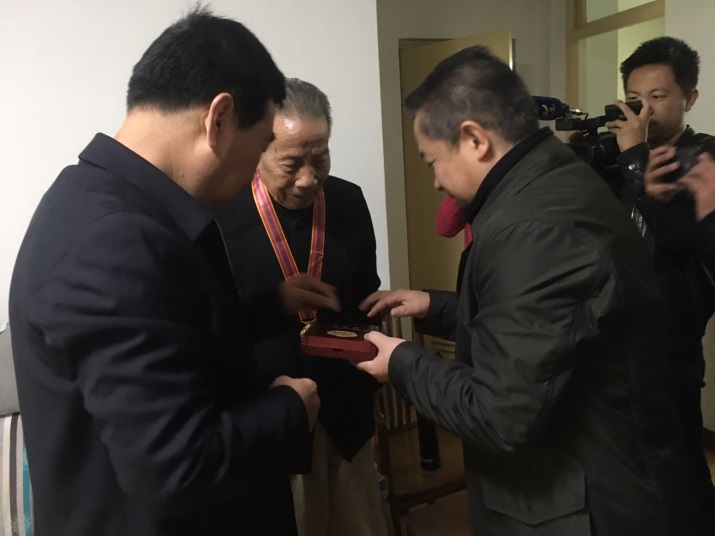 10月26日,市卫健委党组书记、主任翟玉宝一行在市中心医院党委书记张荣岗的陪同下来到了市中心医院刘志芳、邓显明两位抗美援朝老兵家中。在两位老人家中,翟玉宝书记为他们佩戴了“中国人民志愿军抗美援朝出国作战70周年”纪念章,送去了慰问金并关切询问了老人的身体健康和家庭生活状况,与同行人员一起认真倾听老人讲述关于参加抗美援朝的故事,重温了革命战争时期的峥嵘岁月,并对两位老人在革命战争年代及和平建设时期所作的贡献表示感谢和敬意。