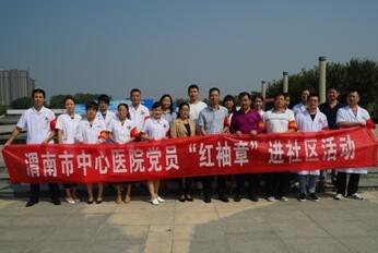 9月21日上午,我院联合渭南高新区金城社区开展“关注百姓健康,共建和谐社区”大型义诊活动,我院党委书记鲁海燕、副院长索朗和我院17名党员志愿者参加。