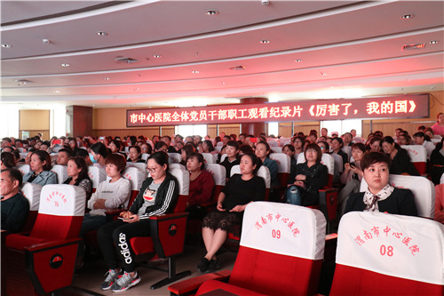 为了贯彻落实党的十九大精神,深入学习习近平新时代中国特色社会主义思想, 2018年4月11日下午,我院党办联同信息科组织全院党员、入党积极分子及部分职工约1000余人,在报告厅分2场观看了大型纪录片《厉害了,我的国》。