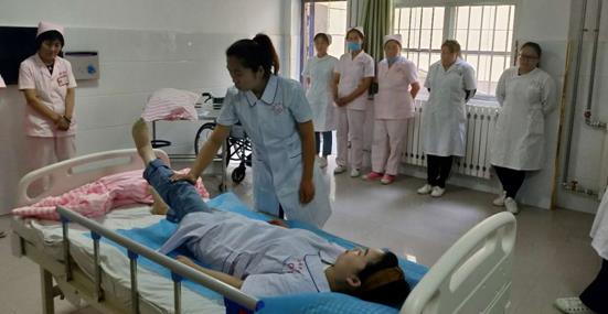随后,重症医学科护理小教员马萌现场演示了偏瘫患者体位摆放的具体操作并走进医养病房,现场指导偏瘫患者翻身、下床。当偏瘫老奶奶在护士的帮助下成功坐到轮椅上时,老人激动的留下泪水,连说几句“姑娘,费心了,没啥好感谢,把我家的苞谷糁带来你尝尝,谢谢”!