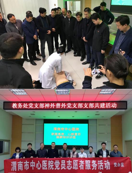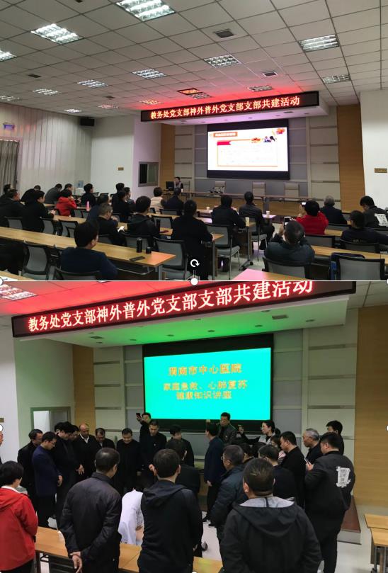 受市委党校教务处五星党支部赵纪书记邀请,11月8日下午,市中心医院神外普外党支部在党俊涛支部书记的带领下,一行6人到市委党校开展两支部共建活动,为党校部分党员以及正职领导干部进修班学员共计50余人讲授高血压防治、现场演练心肺复苏。教务处许卫东处长出席了此次活动。